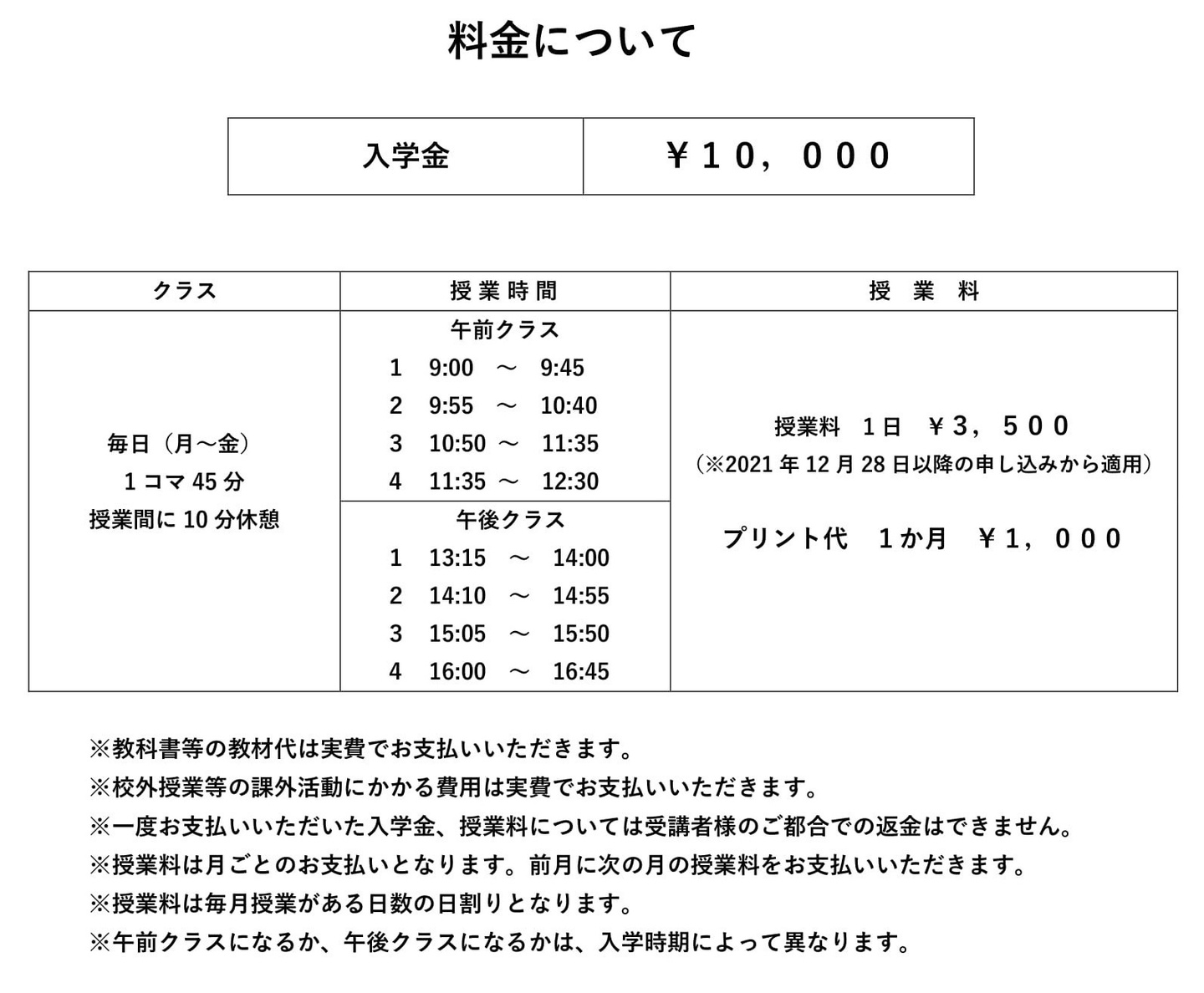 (当校は留学生優先に受け入れを行っており、クラス定員は法務省の告示基準に沿って一クラス20人までとなっております。留学ビザをお持ちでない受講者の方は、コース途中であっても、クラスが留学生で定員に達する場合はコースを中断していただく可能性がありますのでご了承ください。その場合、当該月の未受講分のレッスン料金は返金いたします。)